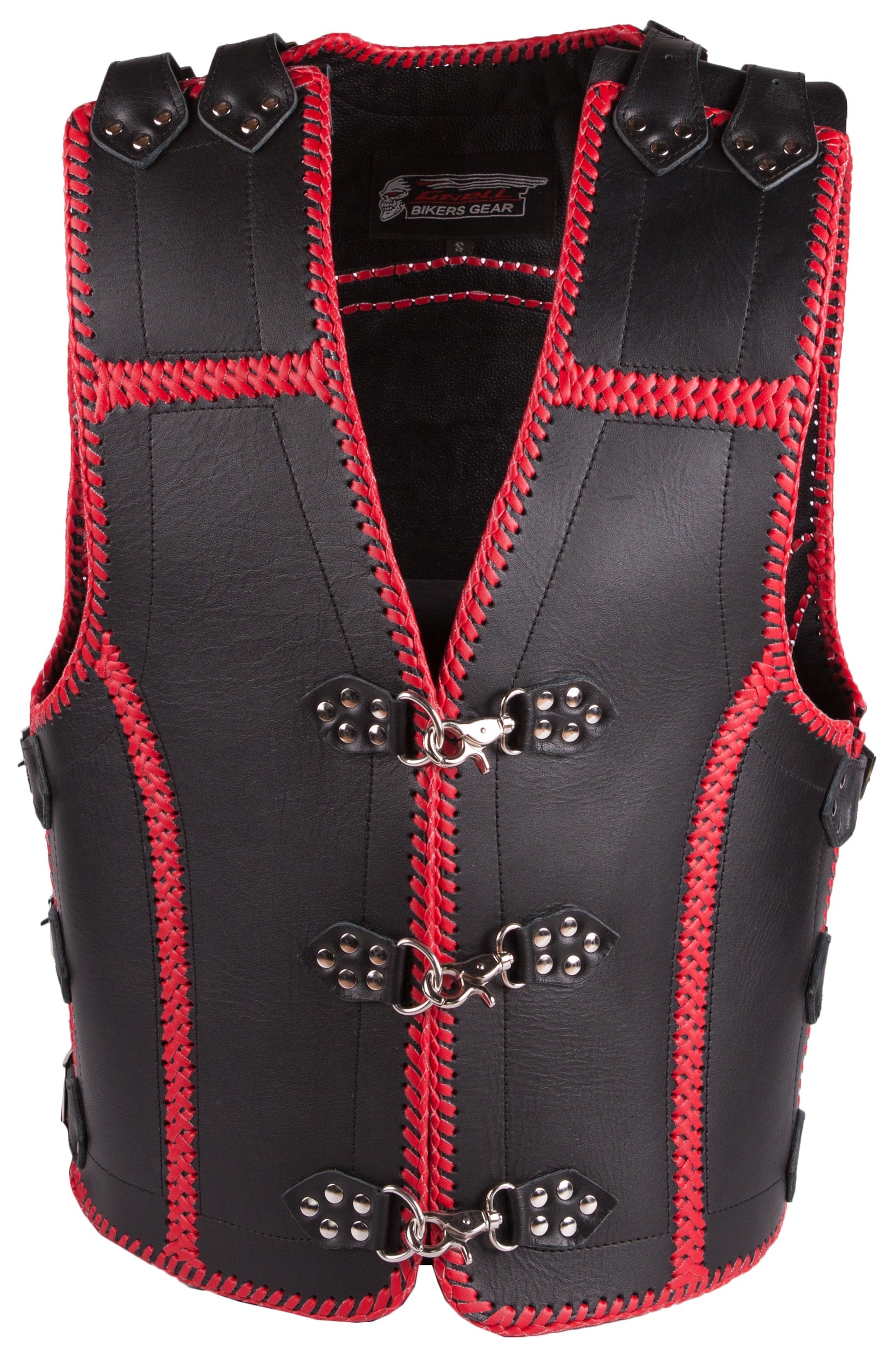 This motorcycle leather vest is made from top-grade 4mm thick cowhide leather. With adjustable buckles on shoulders and two sides, it could provide you with a better fit.