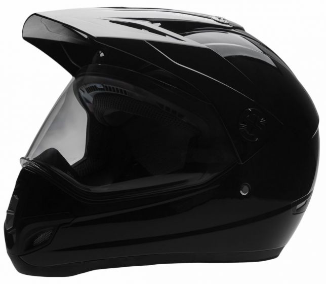 all-new for adventure/supermoto, dirt ,dual purpose helmet with flip up visor and fixed peak,comes fitted with clear visor standard